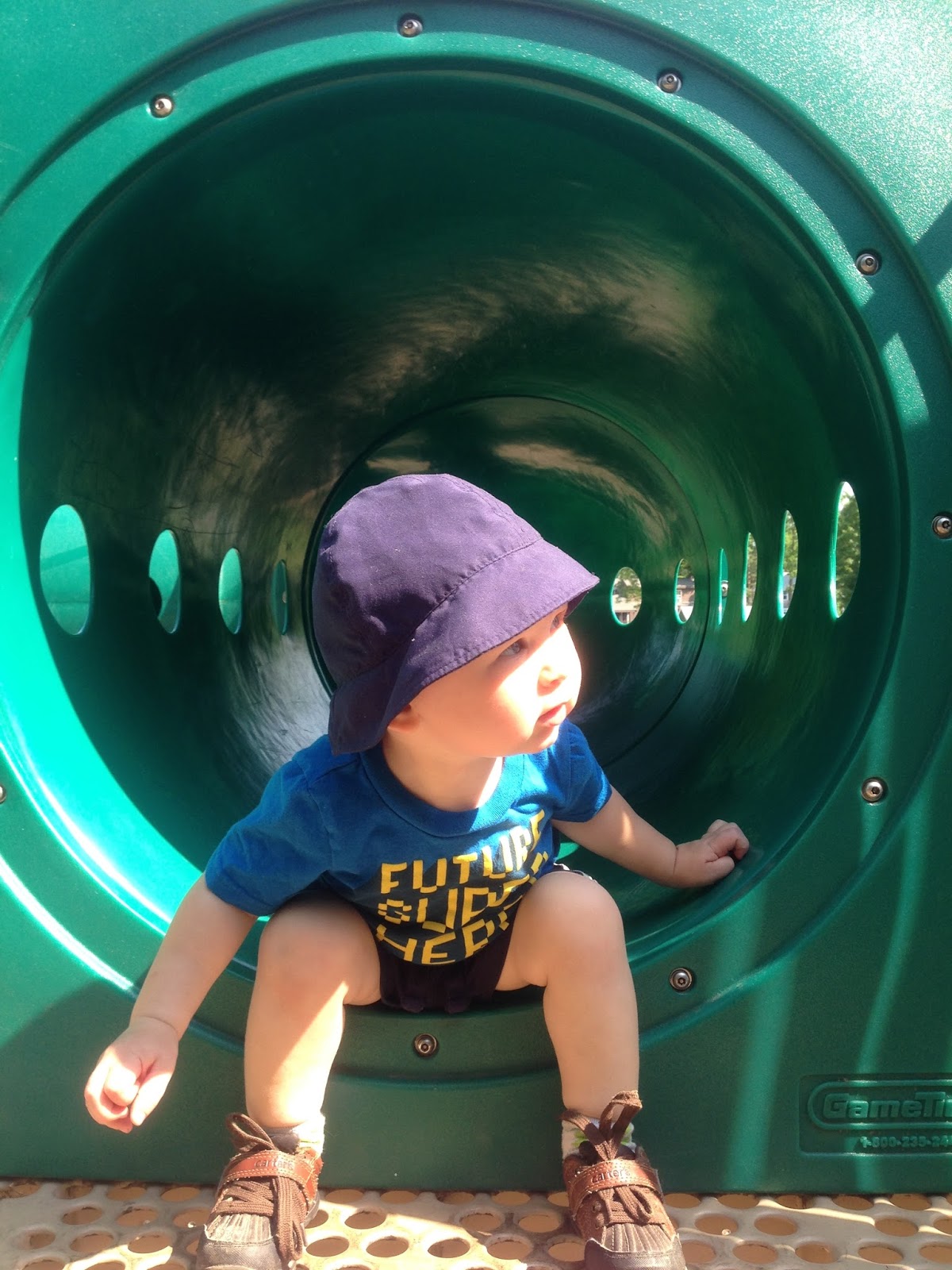 Who cares about the giant ball field to run around or the planes to watch overhead, much less the playground equipment, when there are sticks to throw in the stream?